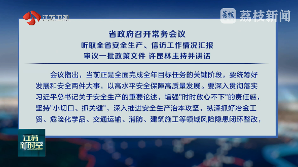 10月18日,省政府召開常務會議,聽取全省安全生產、信訪工作情況匯報,審議《關于加快釋放數據要素價值培育壯大數據產業的意見》《江蘇省公共數據授權運營管理暫行辦法》,研究部署下一階段重點工作。省長許昆林主持會議并講話。查看全文 >